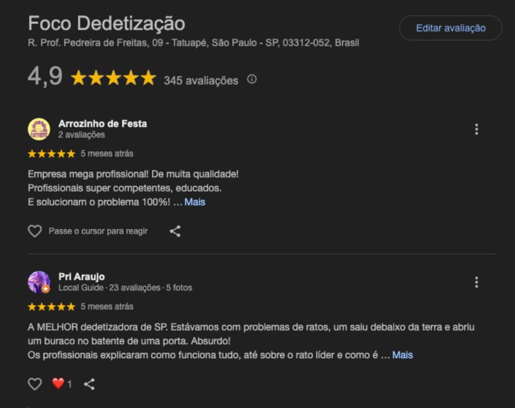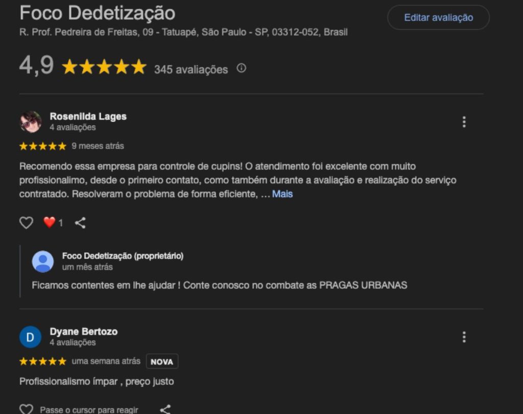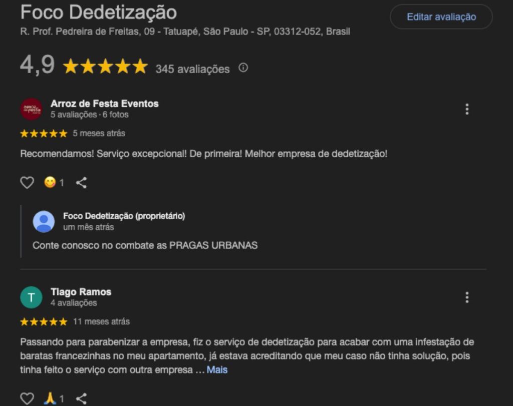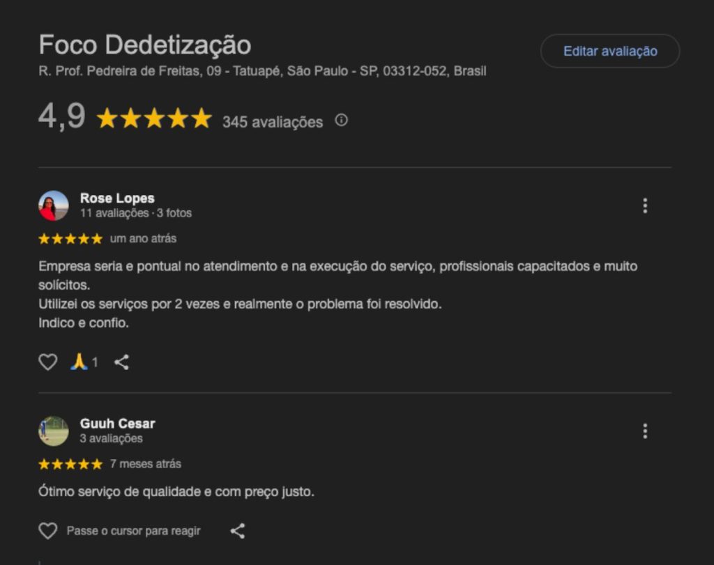 Na hora de proteger sua casa ou empresa contra pragas, confiança e resultados fazem toda a diferença. A Foco Dedetização é referência em São Paulo porque une experiência, tecnologia e atendimento humanizado para entregar o que você mais precisa: tranquilidade e segurança.